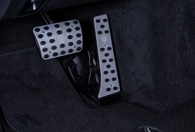 Sporty looks with a safe grip. BRABUS pedal pads made from matte anodized aluminium. Two-piece set for automatic transmission vehicles.