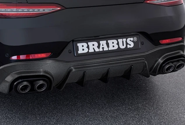 The rear skirt – designed like a classic motor racing diffuser. Replaces the original rear fascia insert. Made from high-grade carbon fibre.