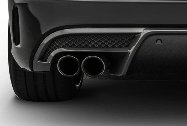 Available for the C43. The BRABUS sport exhaust system. Features actively controlled flaps with two ceramic-coated designer exhaust tips. Performance exhaust may require additional body styling parts.